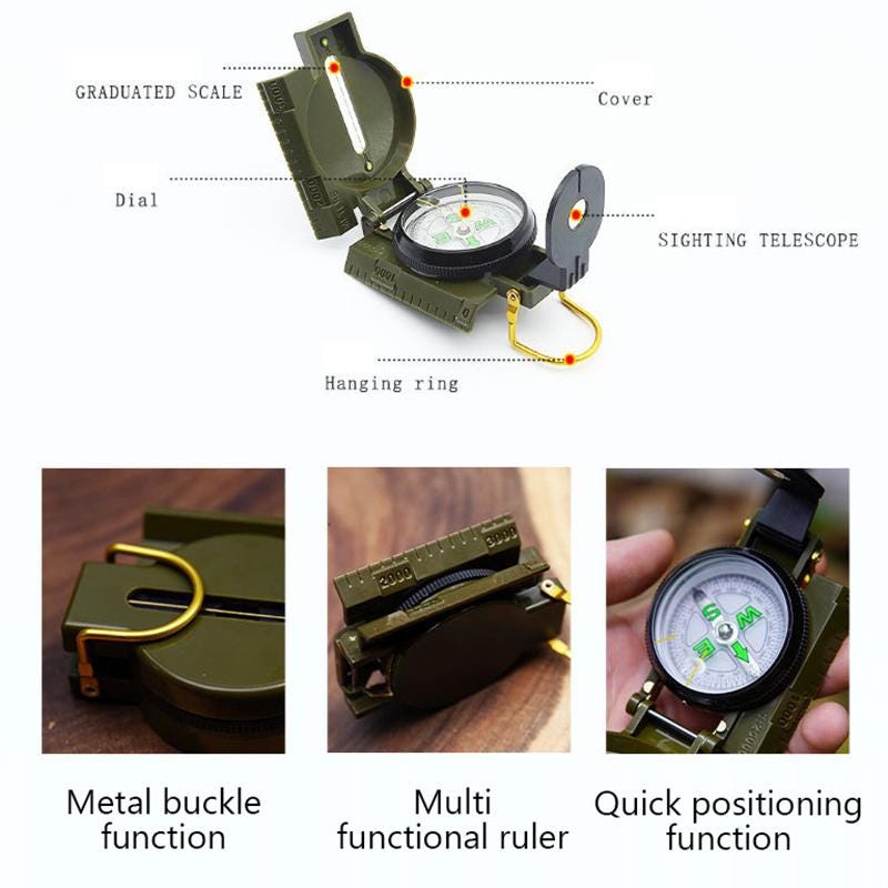 This handheld Army style compass is weather proof, and shock resistant constructed with a Military Grade Metal Case for optimal endurance.***Photo is for informational purposes only***Notes: