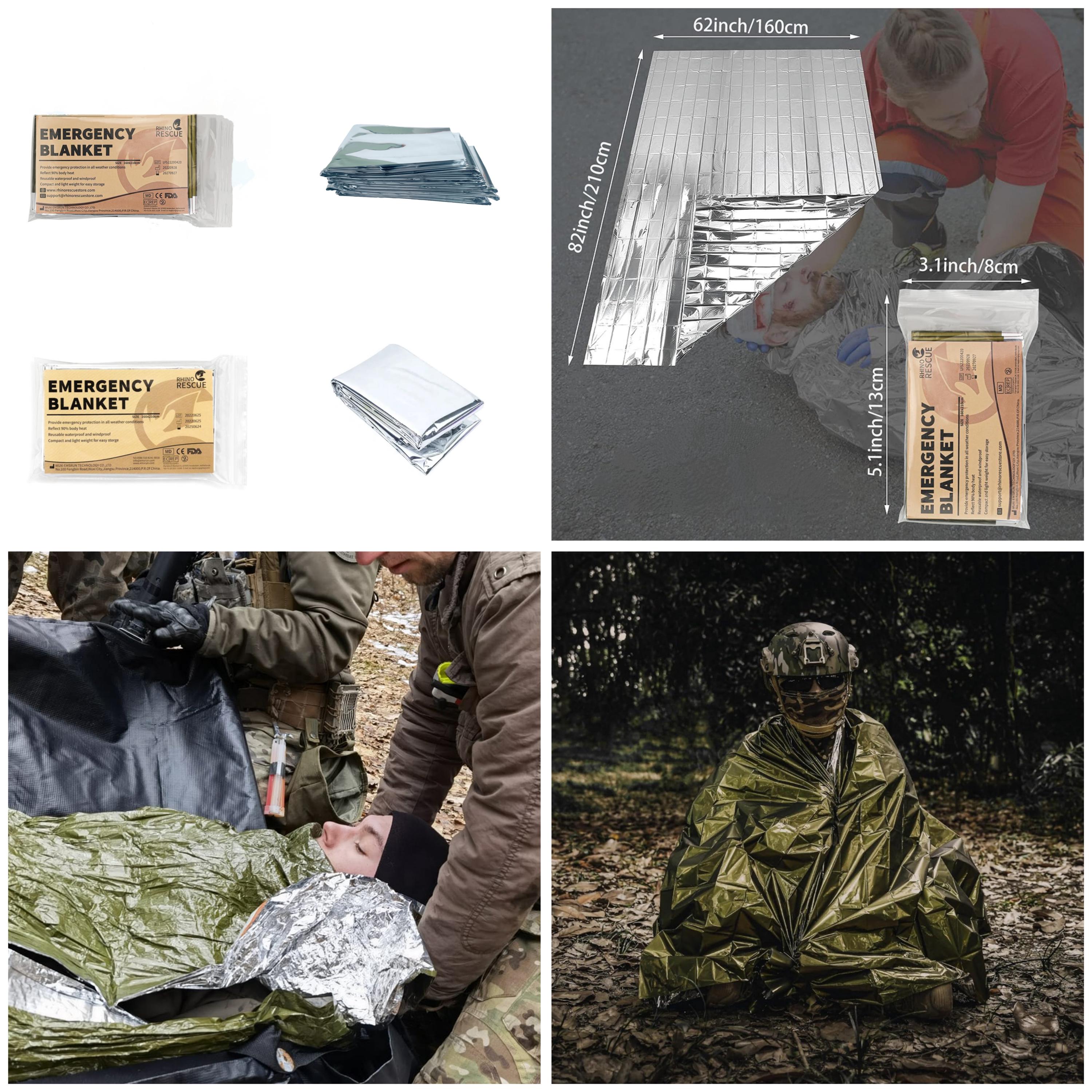 ***Brand New*** Rhino Rescue Emergency Blanket Made of aluminized non-stretch polyester Mylar (PE) (PET) •protection from the weather and elements • Reflects body heat back to the user