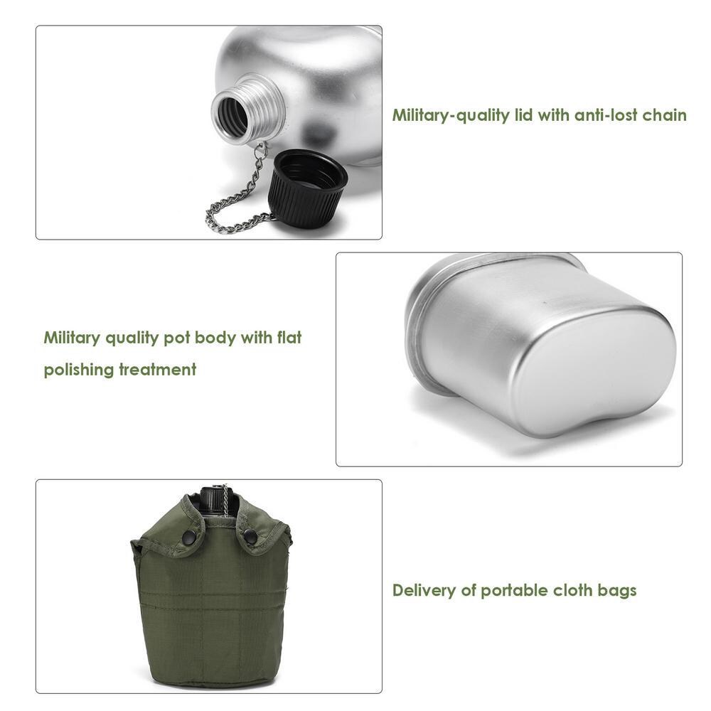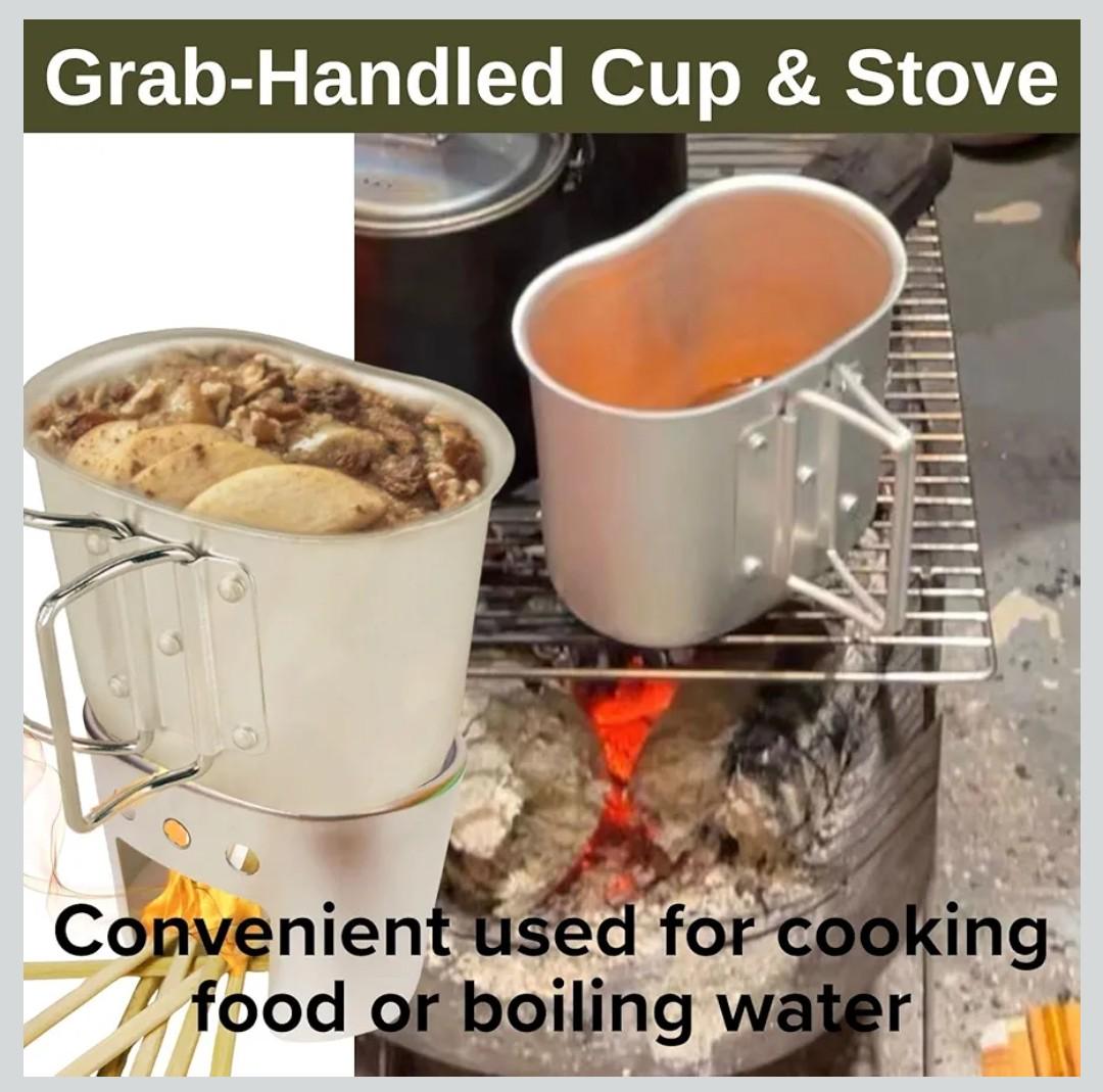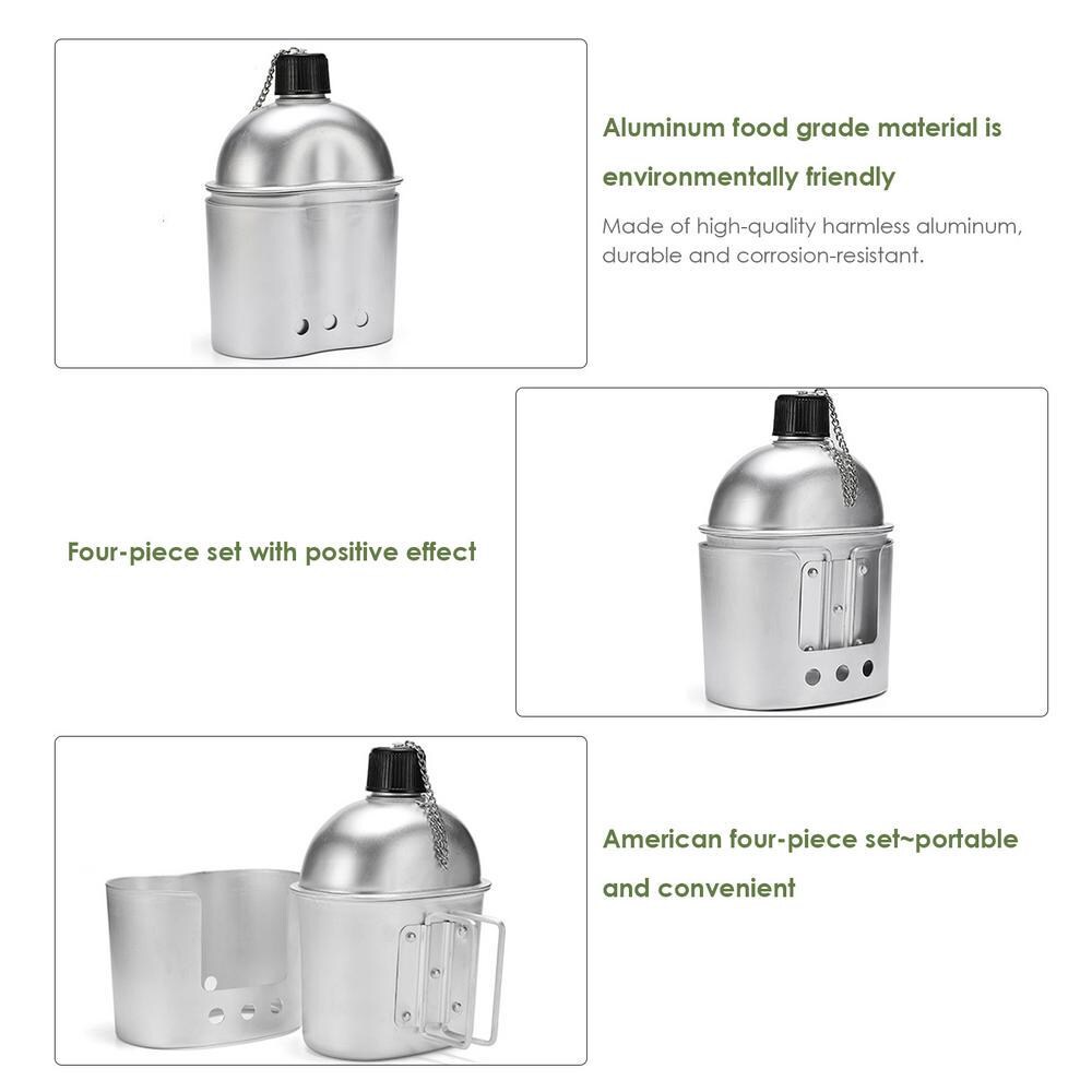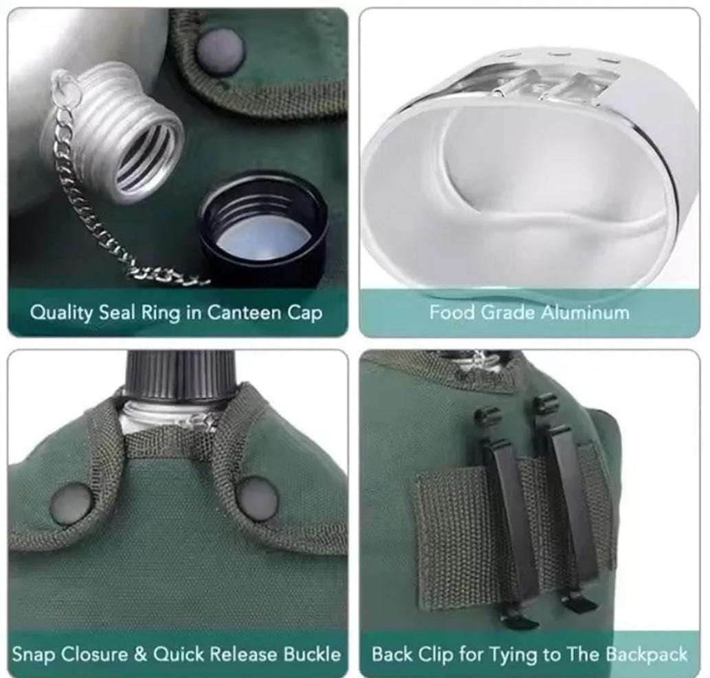 ***Brand New***4-piece Aluminum Army Canteen Cooking Set, including a Water Canteen, a Cup, and a Stove with a Protective Cover.*** Durable and rust-resistant, made of high-quality, food-grade aluminum, it is corrosion-resistant and lightweight, ensuring exceptional durability even in harsh outdoor conditions.