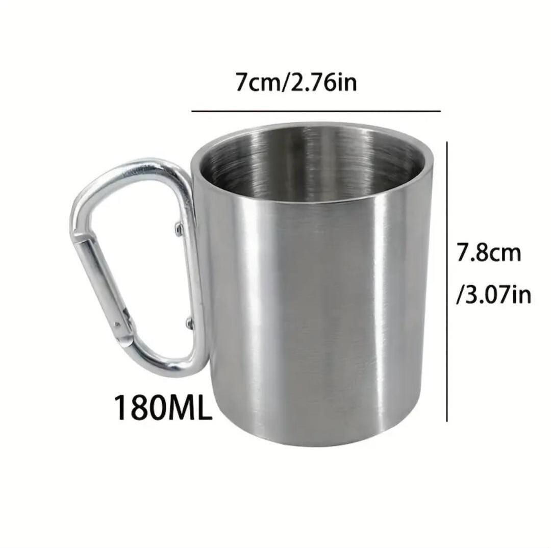 ***Brand New***This 180ml travel mug is the perfect companion for your outdoor adventures and daily journeys. Crafted from high-quality 304 food-grade stainless steel, it is rustproof, corrosion-resistant, and built to last without denting. Its lightweight design, combined with a handy handle carabiner clip, makes it easy to attach to your backpack or belt, keeping your hands free. The smooth, polished rim ensures comfortable sipping, while the double-layer stainless steel walls protect your hands from hot beverages. Compact and travel-friendly, this mug won’t weigh you down or take up much space. Ideal for hiking, camping, or just staying hydrated on the go, it’s a practical and thoughtful gift for outdoor lovers. Whether you’re sipping coffee by the campfire or enjoying a drink on the move, this travel mug fits perfectly into your active lifestyle.***Photo is for informational purposes only*** Notes: