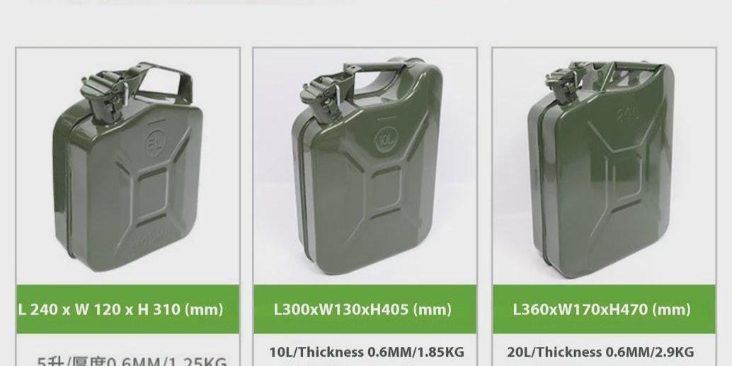 ***Brand New***Metal Jerry Cans 5L-10L-20L Engineered for rugged and extreme environments. Combining military-grade durability with compact ergonomics, those jerry can excels in fuel transportation, emergency gas storage, and field operations. Its advanced sealing system and corrosion-resistant construction make it the ultimate choice for military, outdoor enthusiasts, and disaster preparedness. ***Photo is for informational purposes only*** Notes: